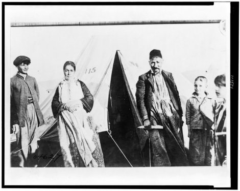 У избеглиштву су се током Првог светског рата, уз Србе, нашле и њихове комшије Јевреји. Тако је и настала ова фотографија, испред шатора у избегличком кампу код Солуна.
