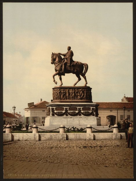Фотографија која је касније обојена показује како је некада изгледао данашњи Трг Републике са спомеником Кнезу Михаилу. Нема високих зграда, саобраћаја…