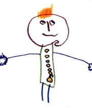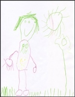 – Цртеж човека се састоји од круга који је глава и црта које представљају руке и ноге (јавља се око 3.- године). Најчешће нема разлике између цртежа човека и животиња. Током те три године, дешава се развој дечјег цртежа човека – полагано се диференцирају делови тела, лик добија трбух, прсте, косу… све више детаља. Око 4. године долази до дефинисања пола цртаног лика – цртају се хаљине, шминка, накит.