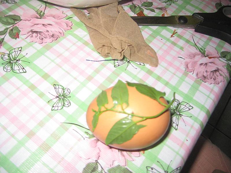 2. Исечете парче најлон чарапе ( дужине толике да јаје може да стане у то парче)