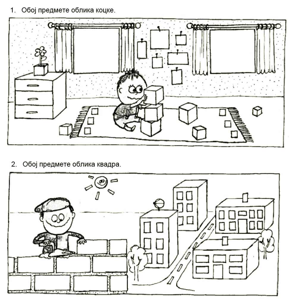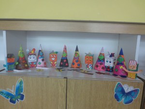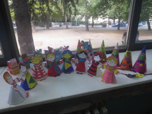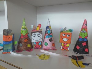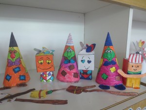 Ових дана из математике радимо геометријска тела: ваљак, купа, коцка, квадар, лопта… А данас смо на часу ликовног то и направили 🙂