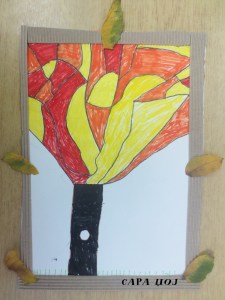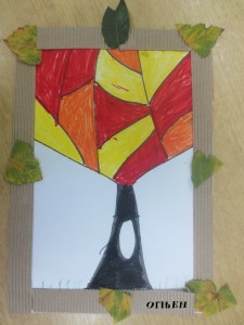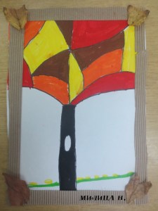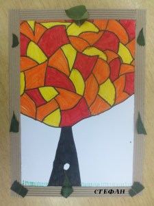 Потребан материјал: папир из блока 5 ( пресечен на пола), фломастери, лепак, картон, маказе и опало лишће. Ово су наши радови 🙂