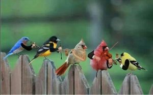 Летела је и благо певала. Њен прелепи цврткут помиловао је ватрено сунце. Када зацвркуће има моћ да оживи увенуле биљке. Јато птица зацвркутало је на зеленој ливади. Сви су уживали у том чаробном звуку. Зелени храстови плесали су, док су птице певале.