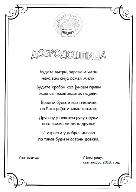 За ђаке сам припремила добродошлицу, кликом на слику отвориће се фајл у ПДФ-у :
