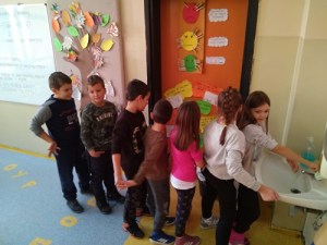 Пета активност: Гледали смо филм : Како се правилно перу руке и научили песмицу „Перимо руке“ која се налази на линку: https://youtu.be/F2XEBjf2934 , па смо руке прали певајући песмицу.