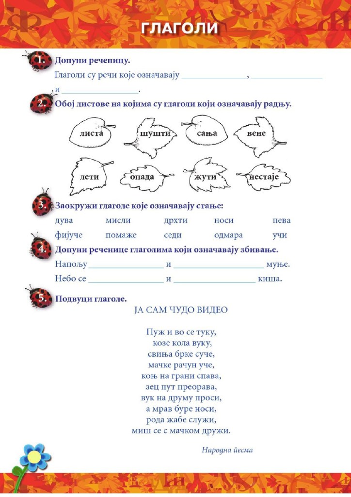 Глаголи – радња – стање – збивање – вежбање – 3