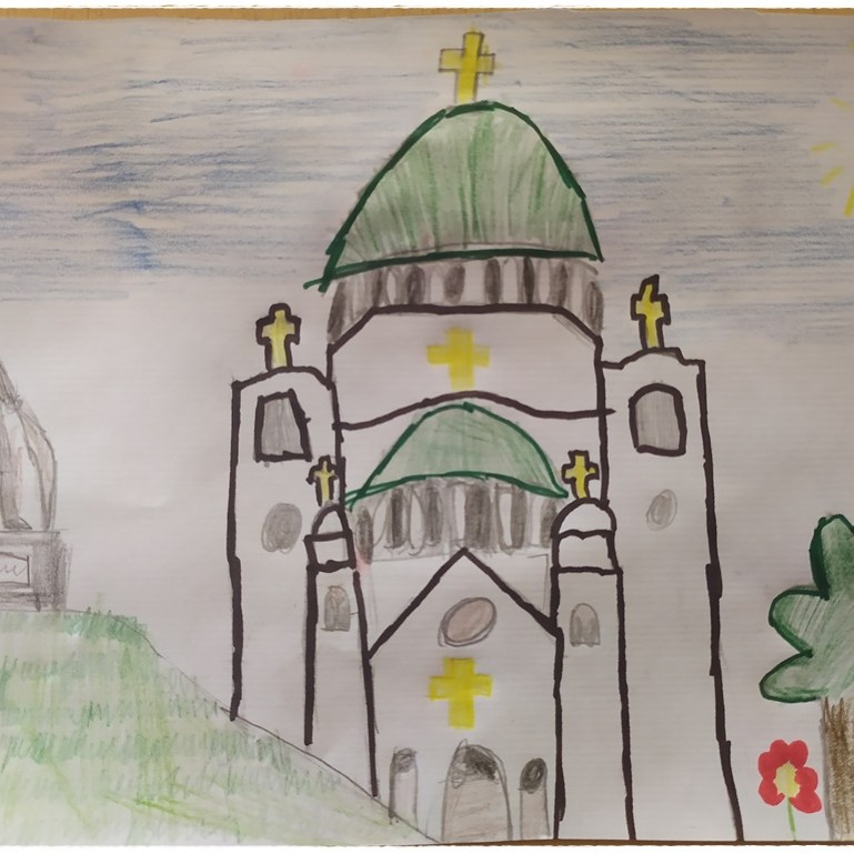 За цртање ликовних минијатура – разледница града Београда, послужиле су нам фотографије са презентација наших другарица из одељење: Маше и Нине.