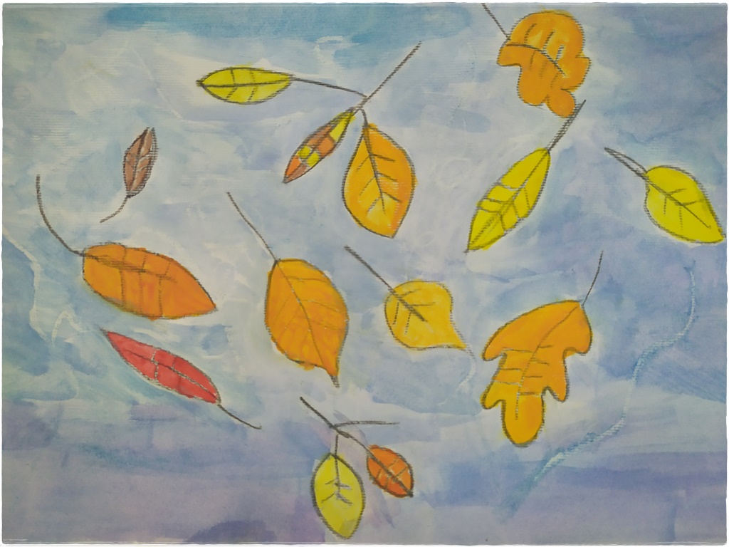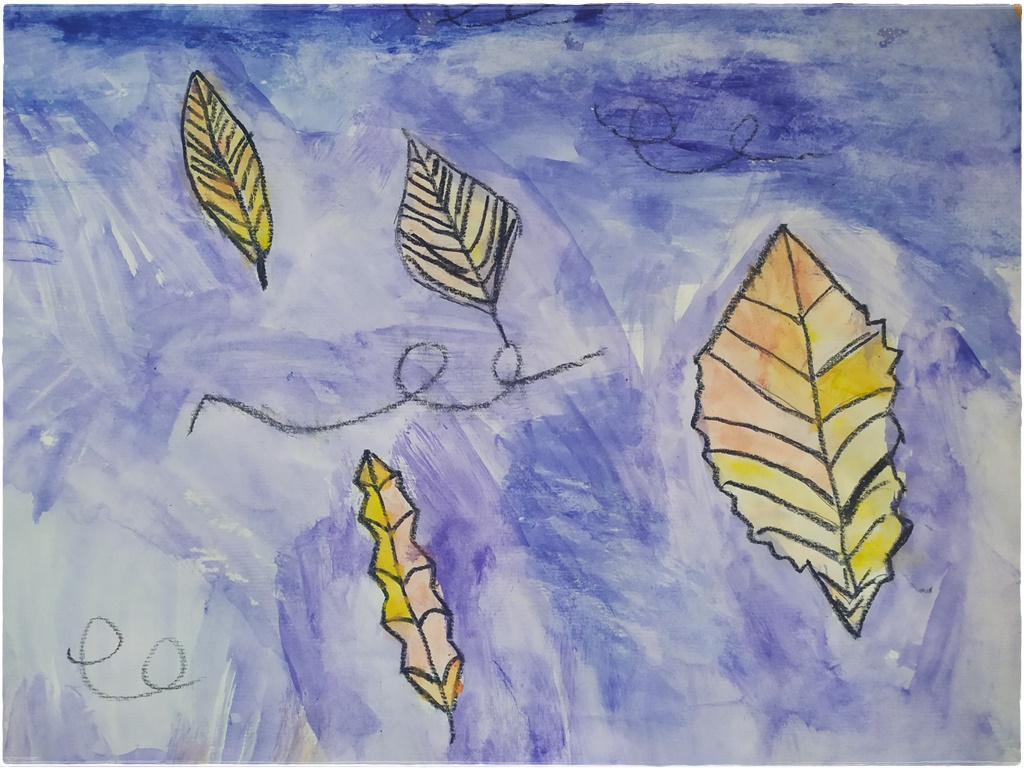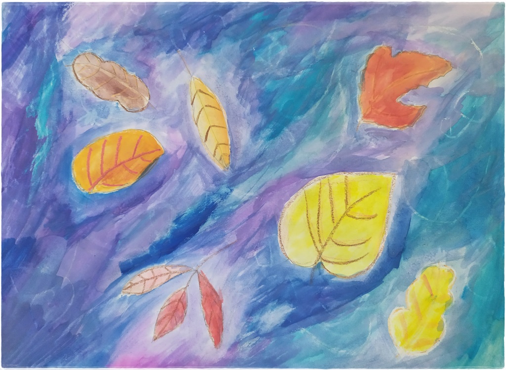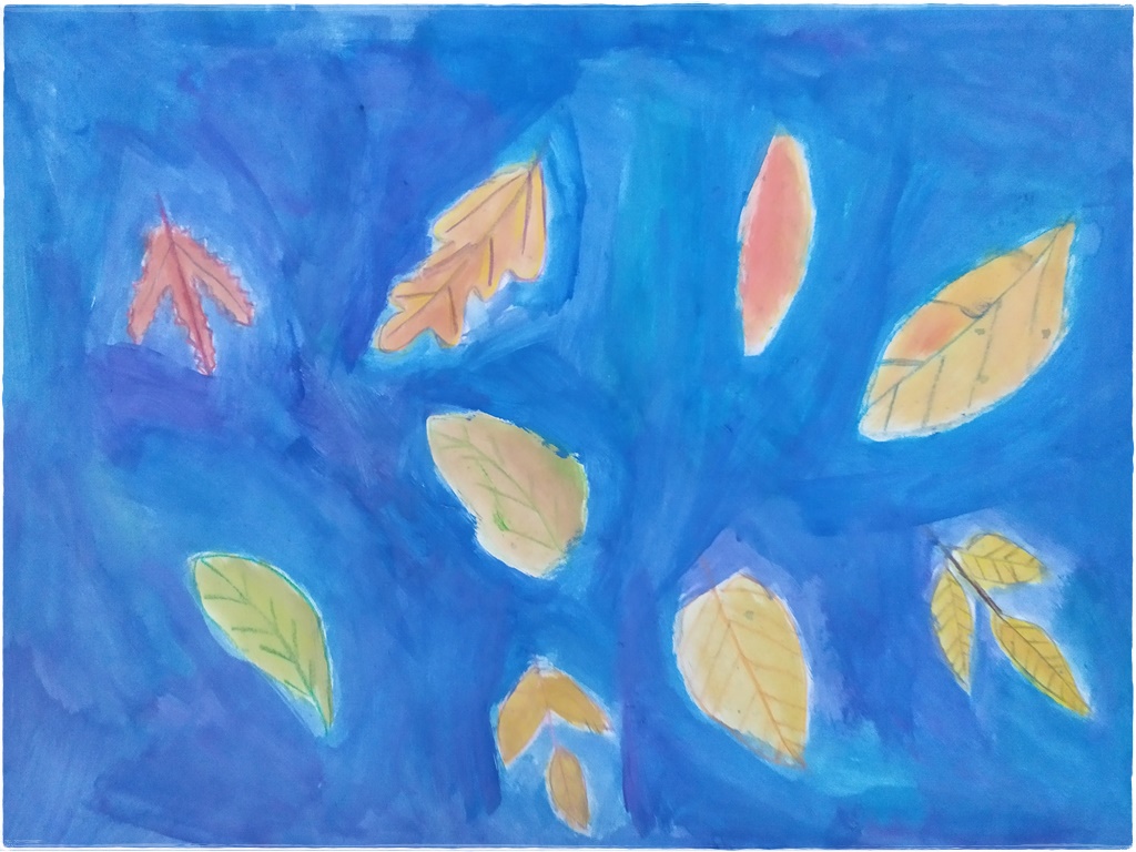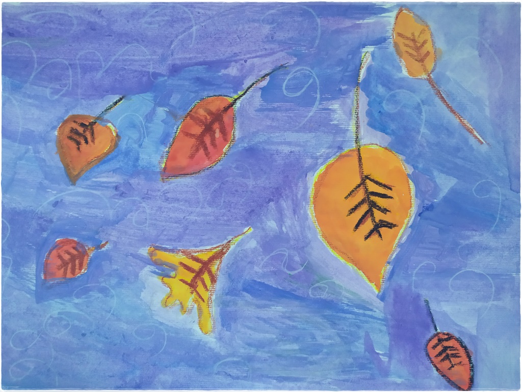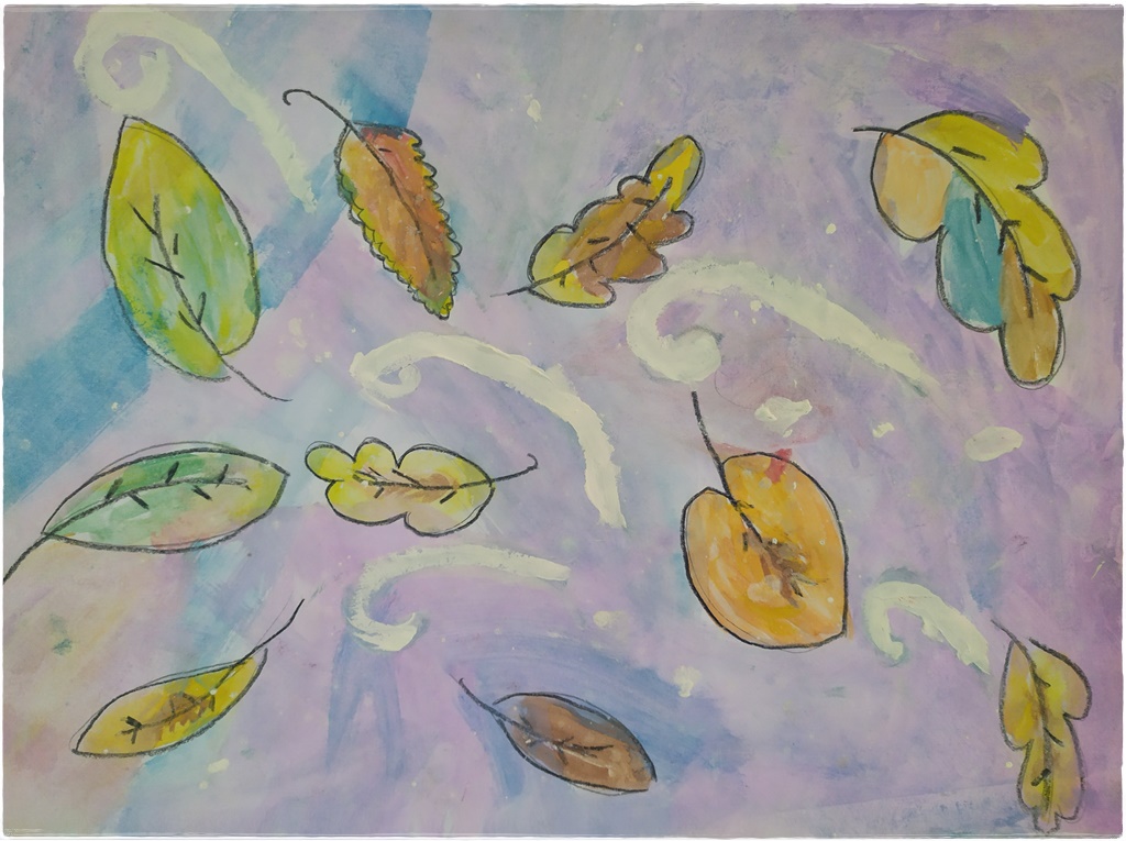 Композиција облика и контраст боја… и већ сам и радила ову јесењу тему, но свака генерација доноси свој печат и развија своје таленте, па увек радо у октобарским данима осликамо јесење лишће на ветру, напишемо и понеку причу коју би могао да нам исприча на свом путу.