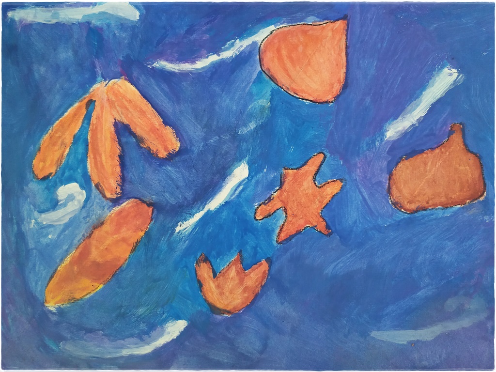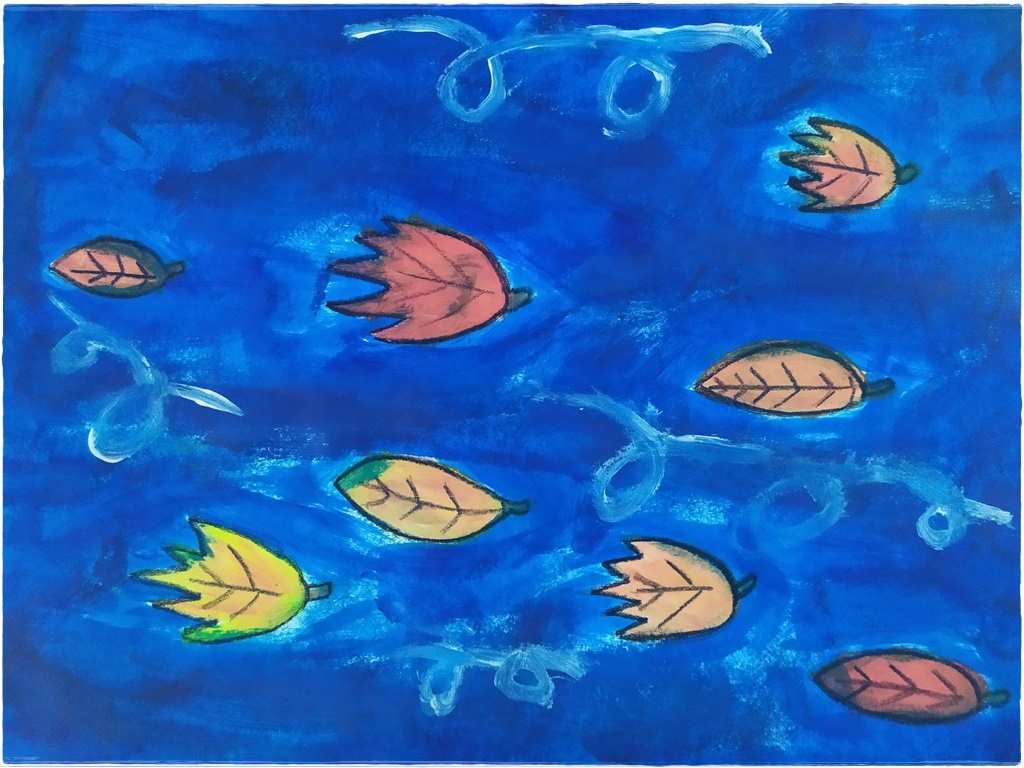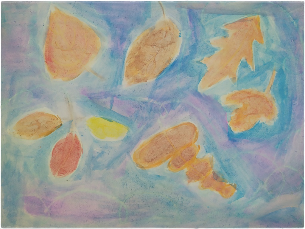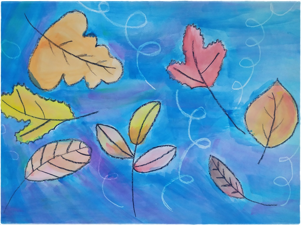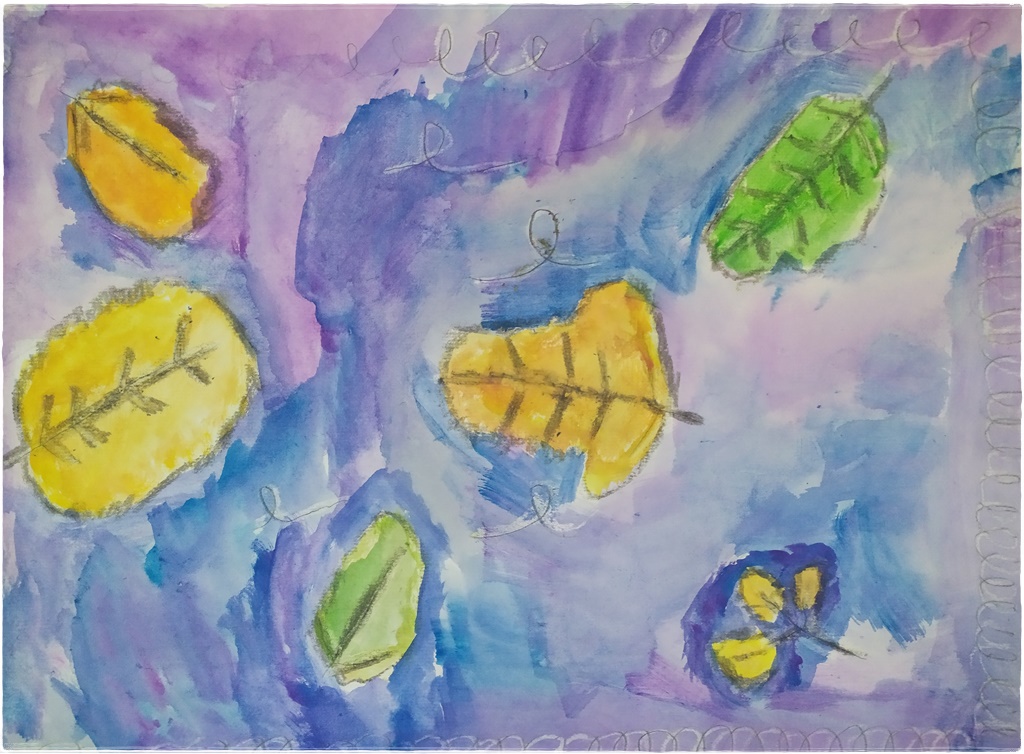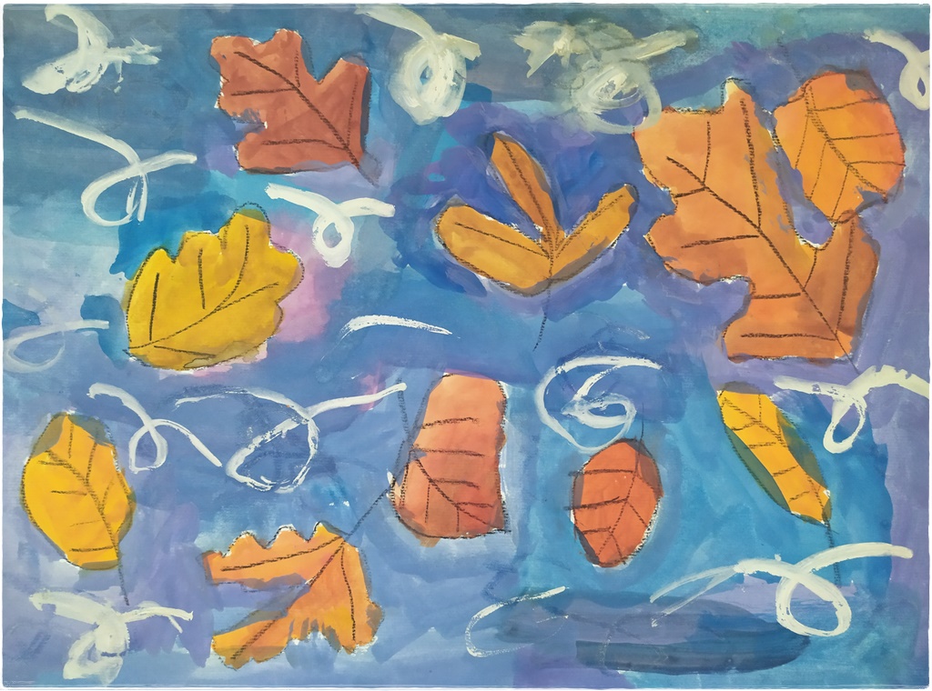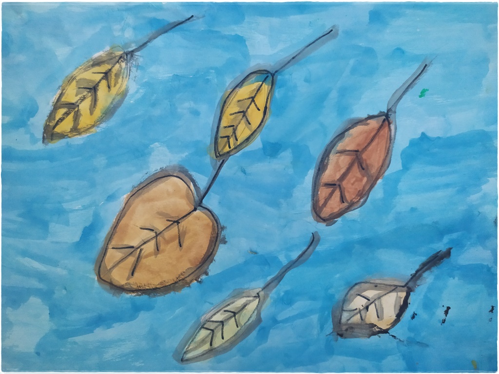 Композиција облика и контраст боја… и већ сам и радила ову јесењу тему, но свака генерација доноси свој печат и развија своје таленте, па увек радо у октобарским данима осликамо јесење лишће на ветру, напишемо и понеку причу коју би могао да нам исприча на свом путу.
