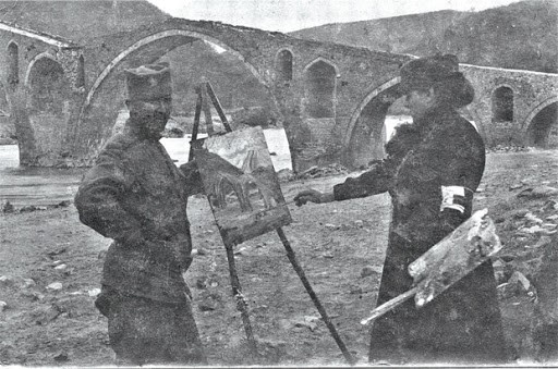 У то време настаће једна од најпознатијих фотографија Надежде Петровић као болничарке, на којој је у црнини, са ознаком црвеног крста на рукаву капута који има у руци и букетом љубичица које јој стоје за појасом. Фотографија је настала 1913. године, у доба када ствара и чувене слике „Косовски божури (Грачаница)“ и „Везиров мост“ (онај преко кога ће наша војска прећи када буде кренула у повлачење преко Албаније 1915.године). На слици ће написати „као једина болничарка, неговала 80 тифусних болесника…“.