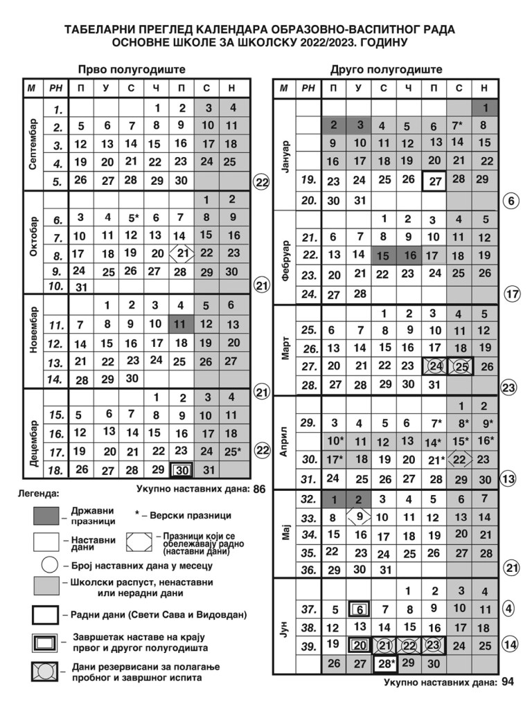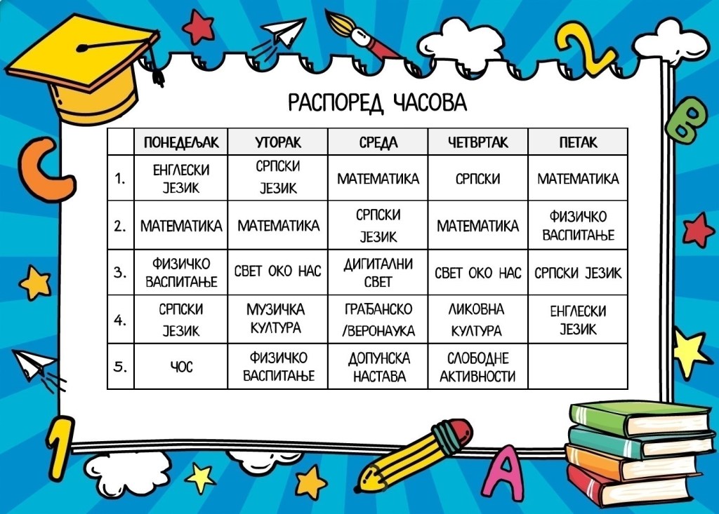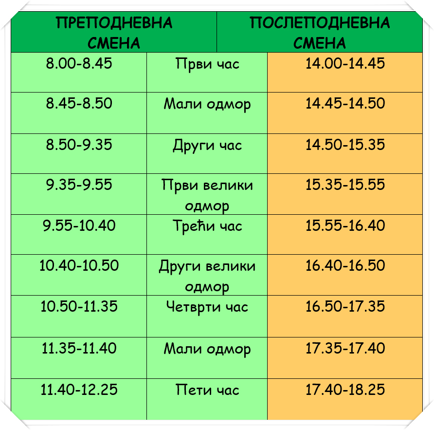 Распоред звона и часова у преподневној и послеподневној смени: