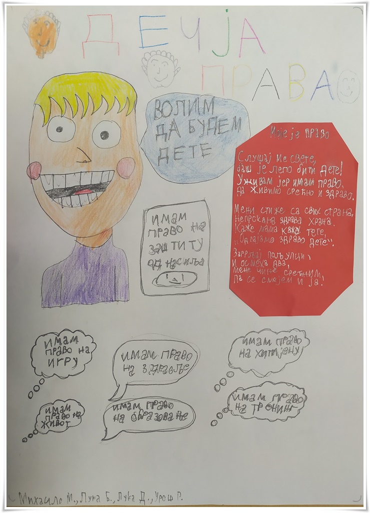У току реализације наставе практикујемо принцип активизма у раду и деца стичу и проширују сазнања о: себи и другима (својим и туђим осећањима, мишљењима, ставовима, делима,…), демократији и демократском начину одлучивања, правима, обавезама, одговорностима и мерама награђивања и кажњавања, развијају критичко мишљење, развијају самопоуздање у изражавању својих потреба, осећања и мишљења, негују ненасилну комуникацију, толеранцију и асертивно понашање, изграђују сарадничко понашање, негују другарство и пријатељство…