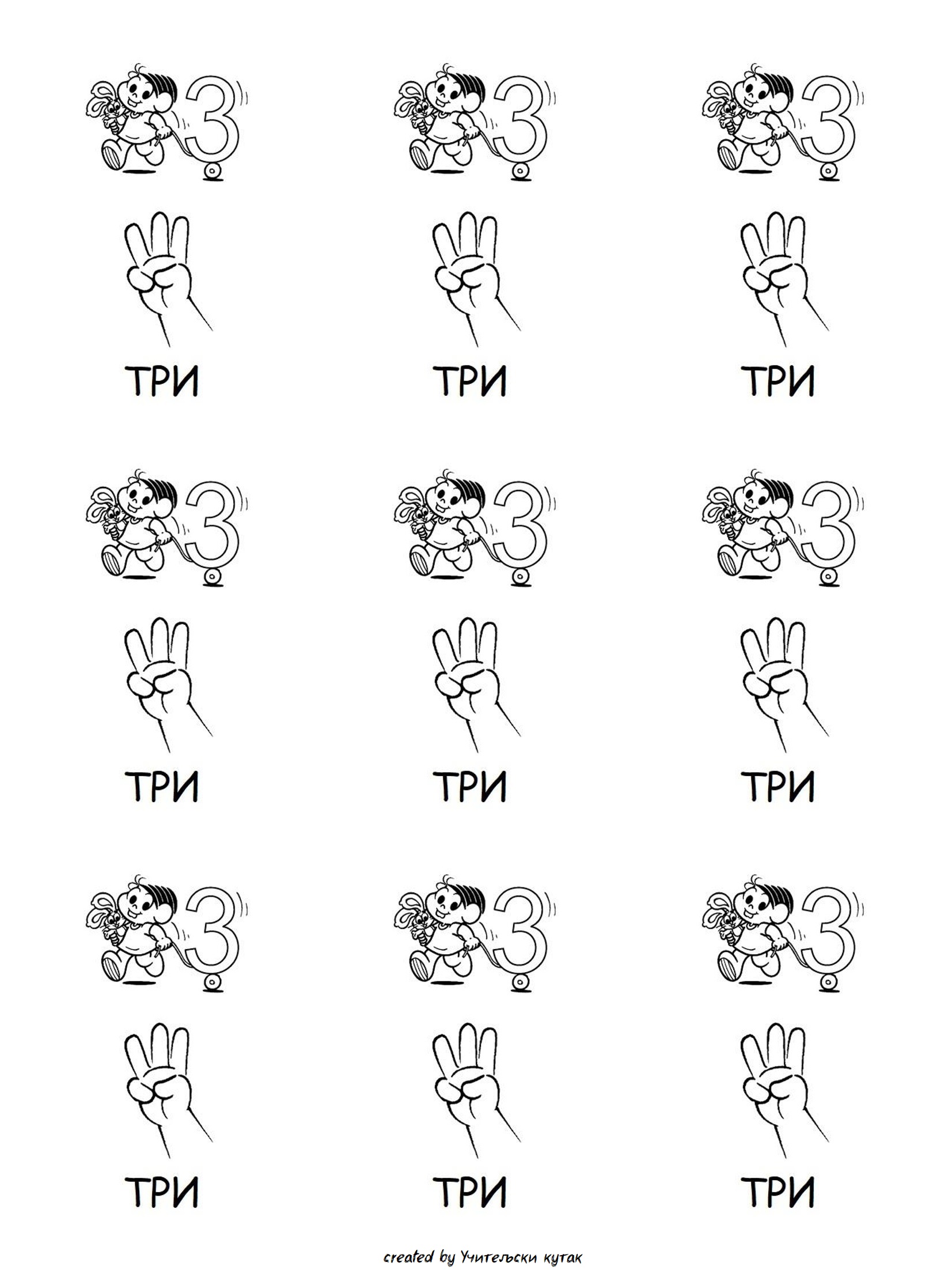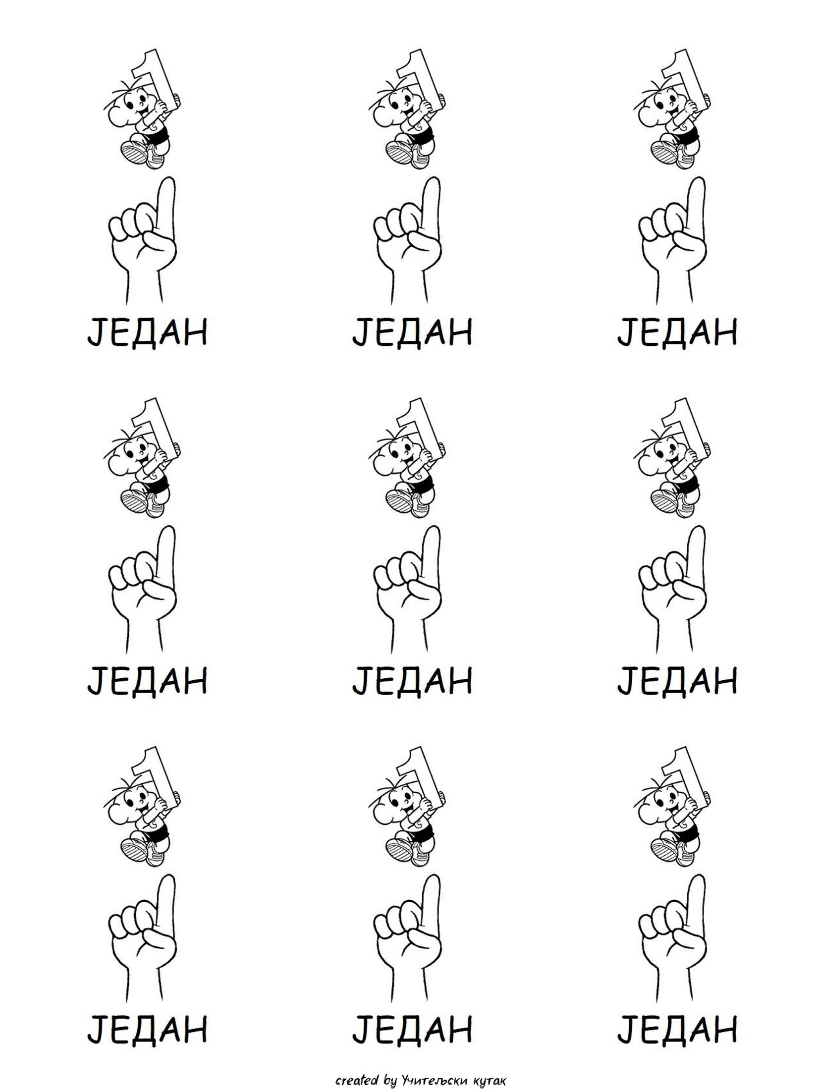 Листићи могу послужити за обраду бројева у предшколском узрасту, или у уводном делу часа у првом разреду. Кликом на слику можете је сачувати и одштампати.