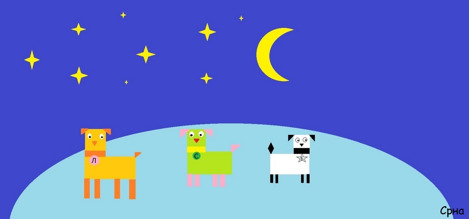 Лајка, Стрелка и Белка – дигиталне слике ђака другака.