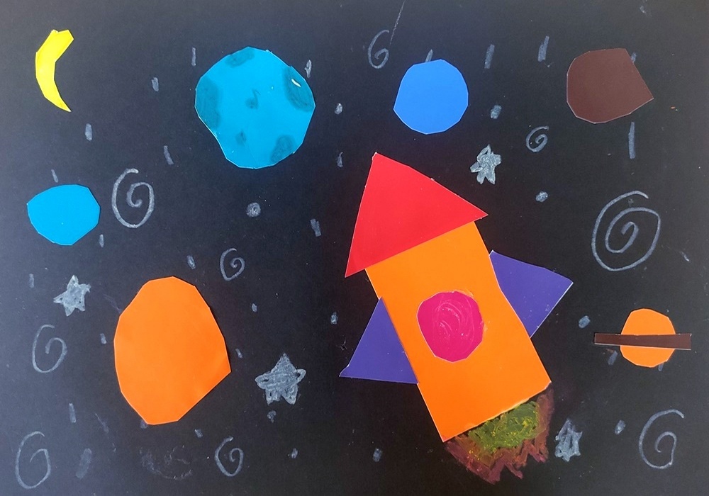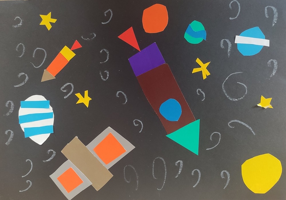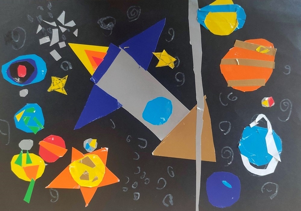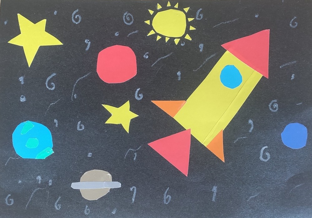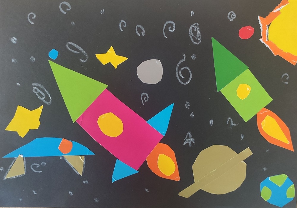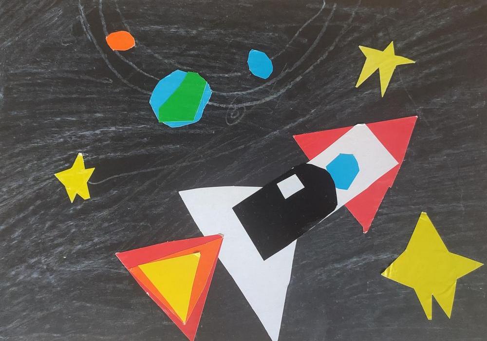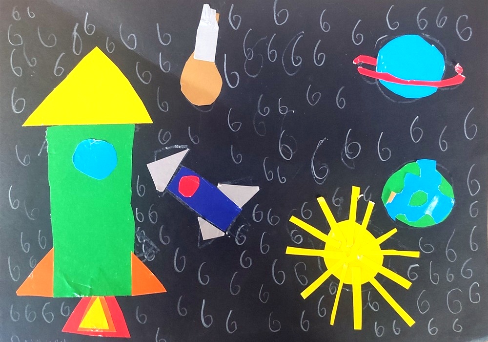 У корелацији са дигиталним светом у којој смо у дигиталном окружње цртали ракету уз помоћ геометријски облика и псе Лајку, Стрелку и Белку, један двочас ликовне културе претвара се у нешто што их испуњава задовољством да испричају своје приче док граде делове Свемира. На крају скупљени један до другог ликовни радови стварају велелепно ноћно небо и причају ликовну причу.