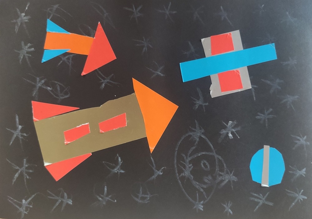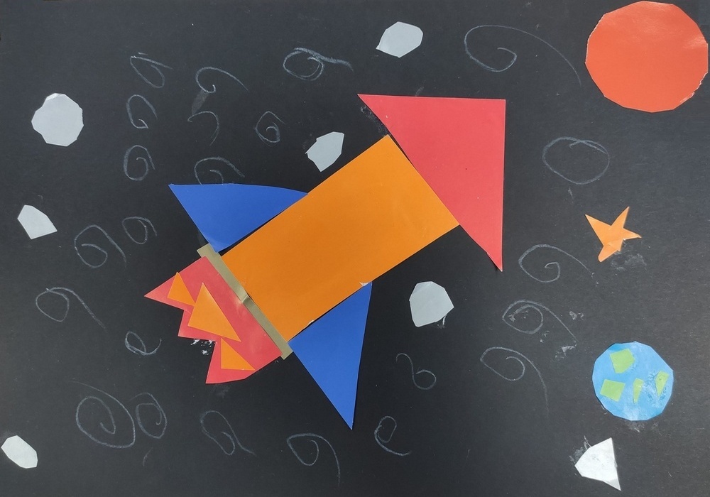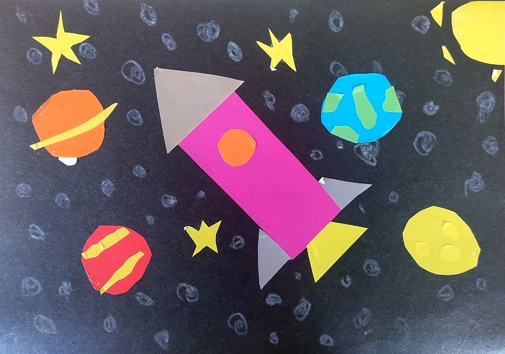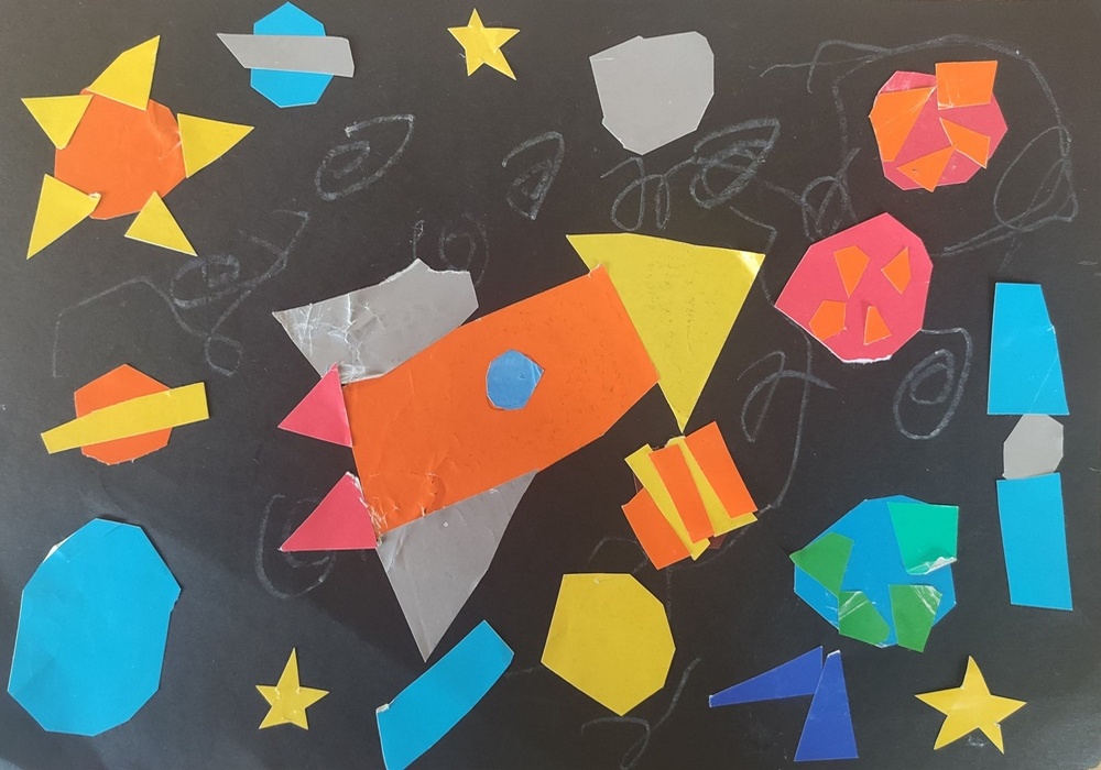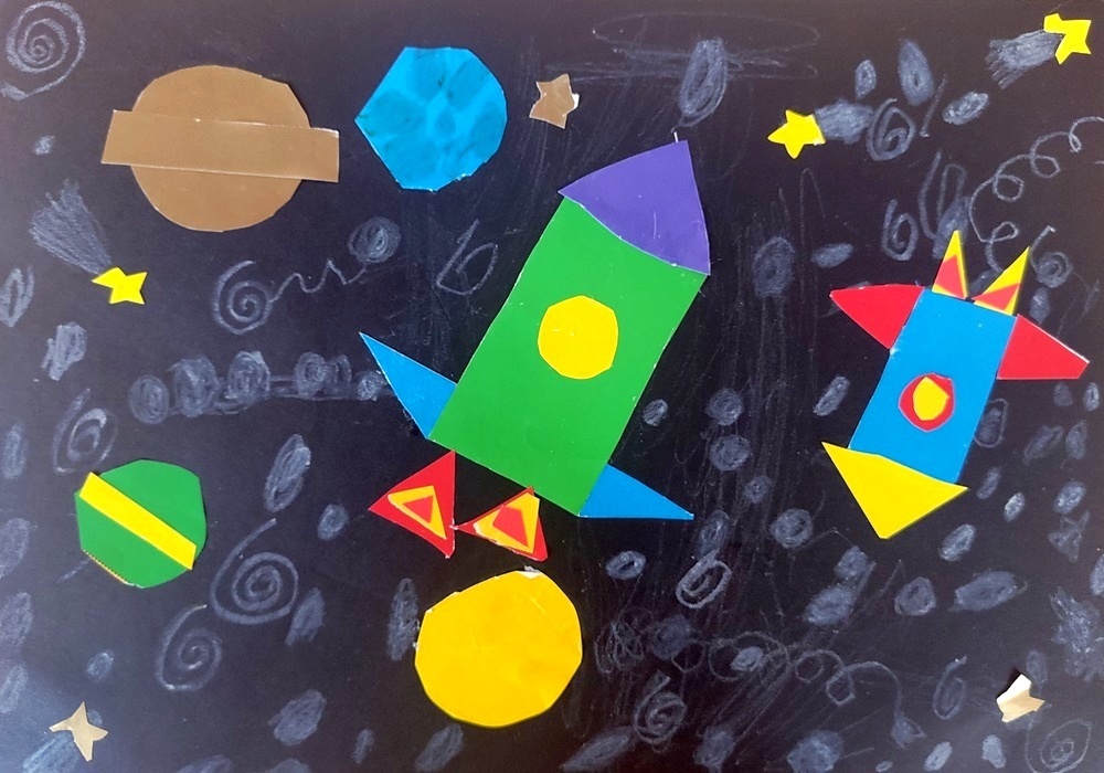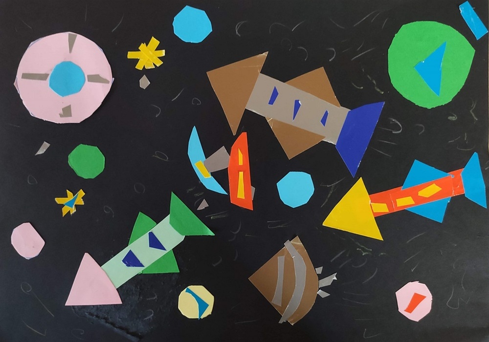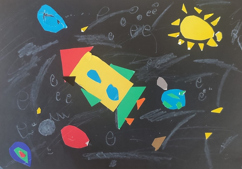 У корелацији са дигиталним светом у којој смо у дигиталном окружње цртали ракету уз помоћ геометријски облика и псе Лајку, Стрелку и Белку, један двочас ликовне културе претвара се у нешто што их испуњава задовољством да испричају своје приче док граде делове Свемира. На крају скупљени један до другог ликовни радови стварају велелепно ноћно небо и причају ликовну причу.