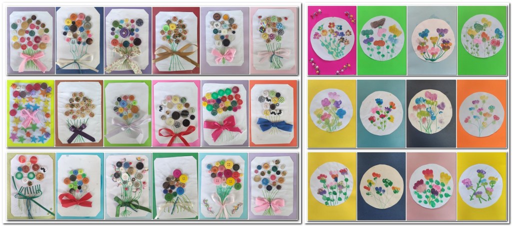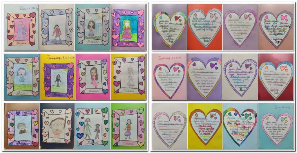 И ове године, за 8. март, посветили смо часове српског језика, музичке и ликовне културе нашим најдражим мамама и бакама. Правили смо честитке од шарених дугмића, сликали букет отискујући своје прстиће, исписивали нежне поруке, учили песмицу „Честитка мајчици“ Ј. Каплана.