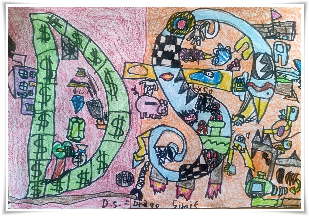 Ликовни материјал: црни фломастер, бојице, фломастери, воштане боје