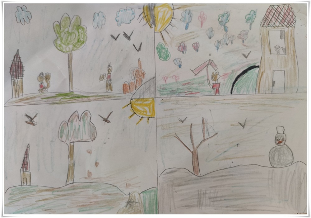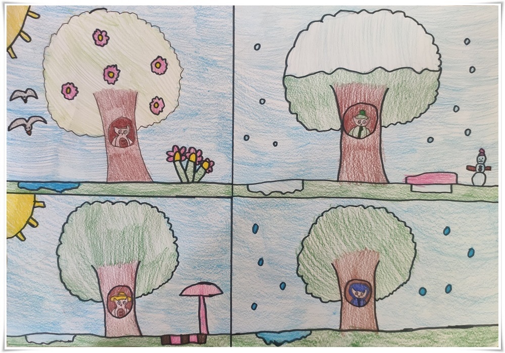 Ученици излажу своје одговоре и објашњавају начин на који су осмислили своје плакате и представили годишња доба.