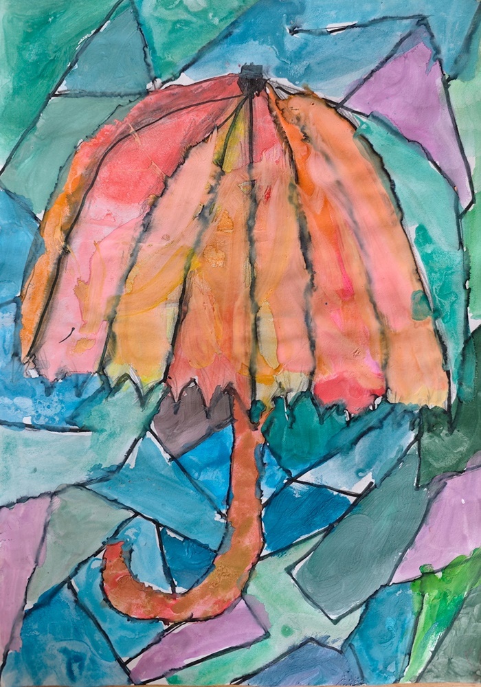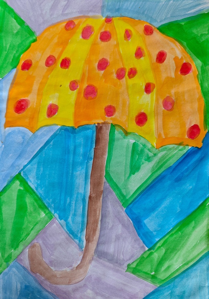 Једном, док је падала тиха јесења киша, и многи стајали поред прозора, догодило се нешто необично. Црвни кишобран прошетао се испод прозора. “Гле кишобран иде улицом” – повикали су људи! Клатећи се час овамо, час онамо приближавао се све више један велики црвени кишобран. “Кишобран иде сам!” – викали су људи нагињући се преко прозора да га боље виде. Свеједно, нису га видели тако добро као они који су га срели и који су одмах приметили да испод њега вире два пара ципелица. Под кишобраном су Бранко и Милена. Мама им је дозволила да га узму и изађу на улицу. Под кишобраном је суво и пространо. Они шетају горе – доле и нико није срећнији од њих.
