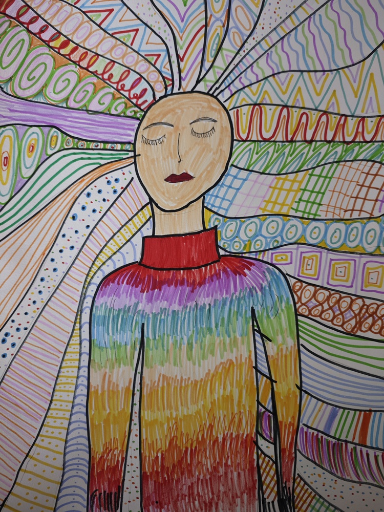 Ученици су кроз ову тему истраживали линију у боји – како се она може кретати, мењати, таласати и стварати контрасте боја, облика и праваца.